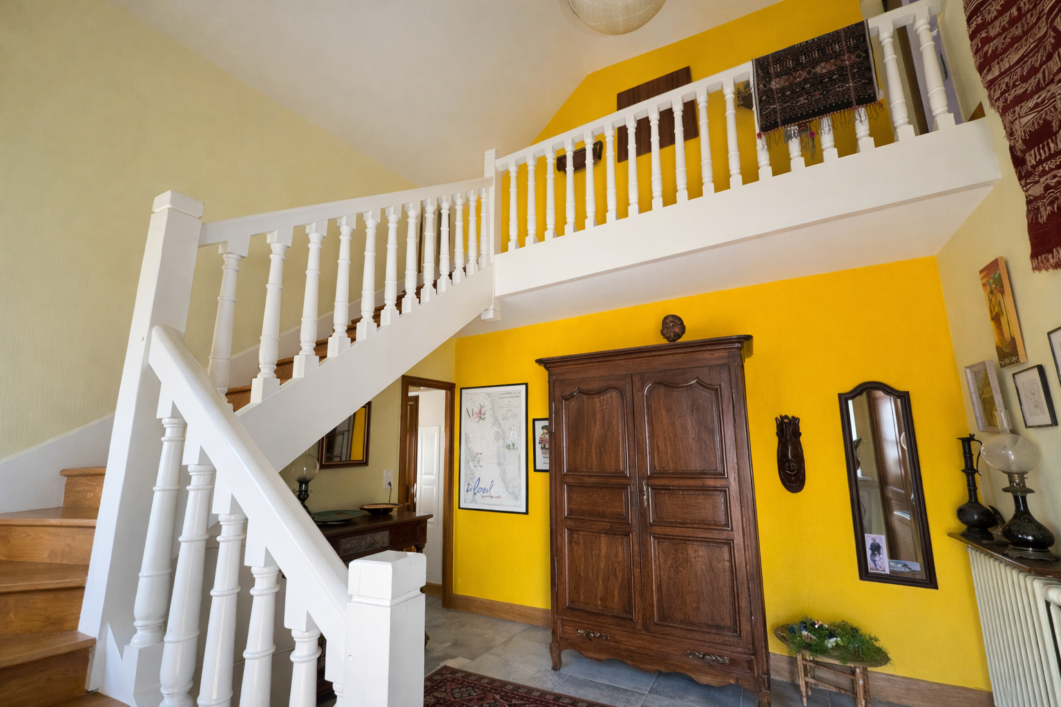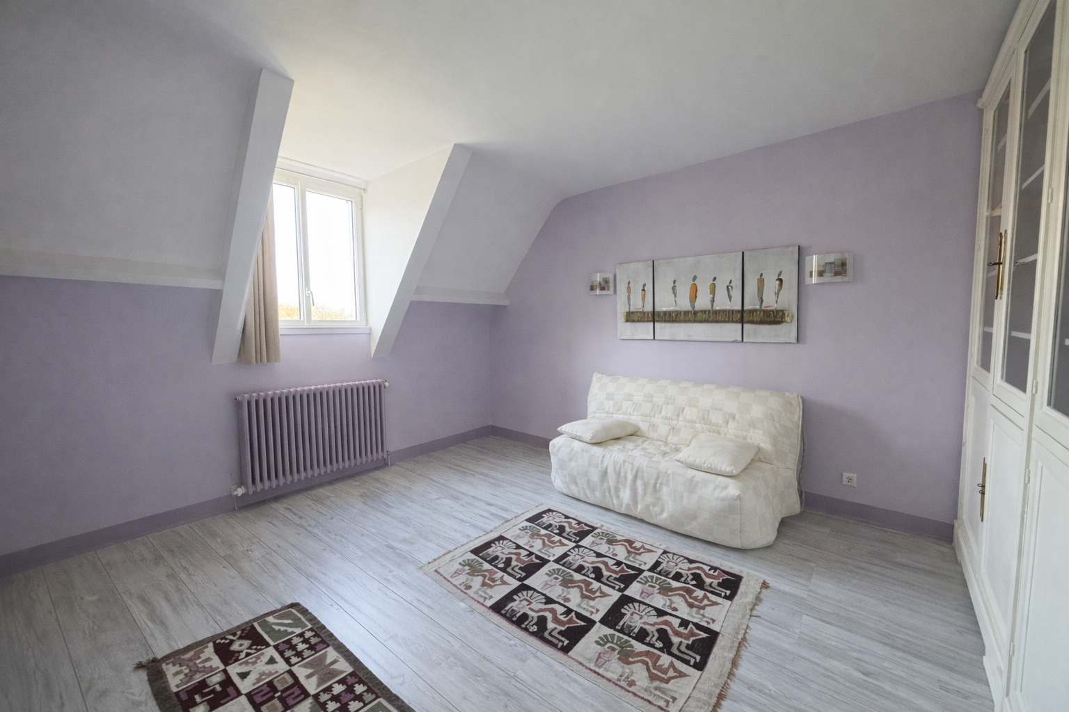 À l’étage, vous découvrirez trois chambres supplémentaires, une salle de bains, ainsi qu’une vaste pièce détente d’environ 40 m², offrant de nombreuses possibilités d’aménagement.