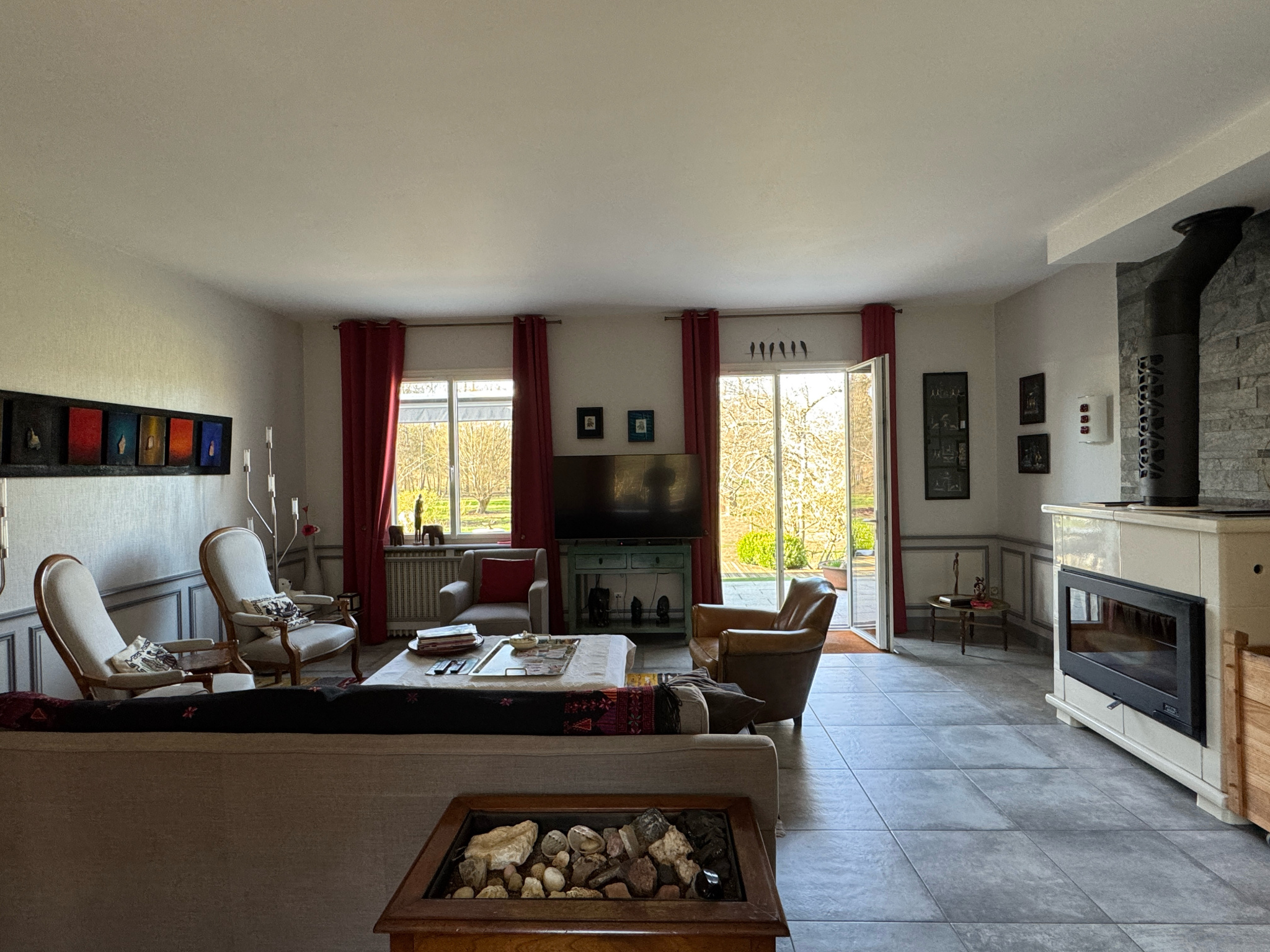 À l’extérieur, le parc arboré d’environ 1,5 hectare, bordé par la Bionne, confère à l’ensemble un cadre naturel remarquable et particulièrement recherché, alliant espace, tranquillité et qualité de vie.